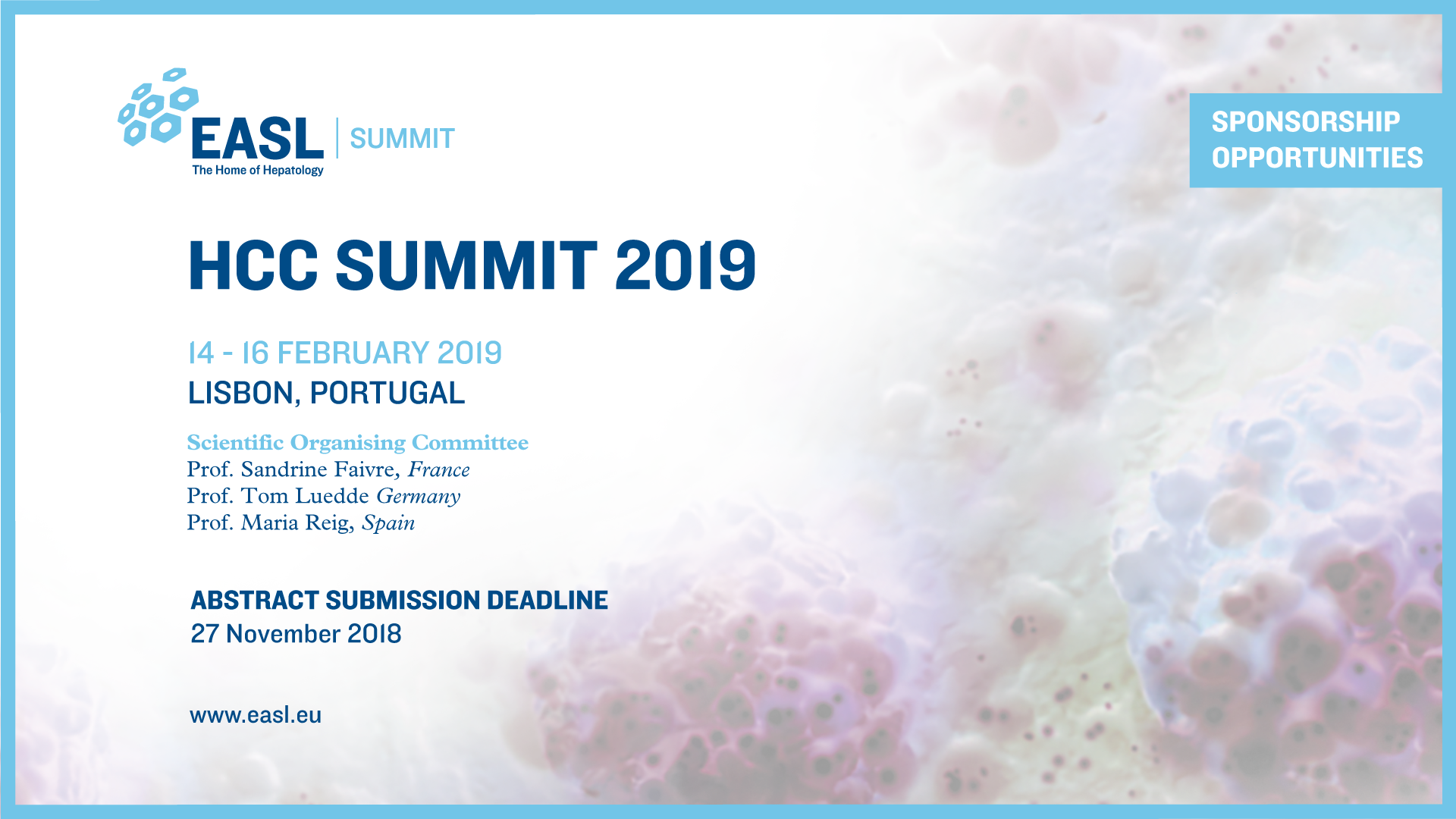 EASL anima a todos los investigadores interesados en Oncología Hepática a participar y enviar trabajos. Todos los jóvenes investigadores (menores de 35 años) pueden aplicar a una de las 50 bolsas de viajes y de este modo poder asistir y relacionarse con expertos de máximo nivel en este campo.