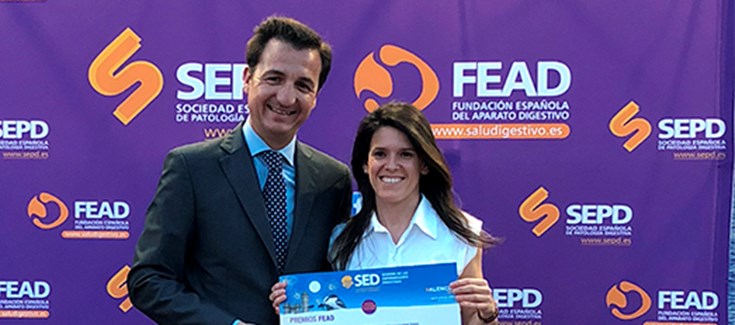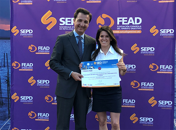 Anabel Fernández, investigadora Sara Borrell del grupo de investigación Biología vascular hepática del IDIBAPS y del CIBEREHD (del grupo liderado por el Dr. García-Pagán), ha recibido el premio Arias Vallejo al mejor trabajo de investigación no clínica en gastroenterología y hepatología. El premio lo concede la Fundación Española del Aparato Digestivo (FEAD) y la entrega se hizo en el marco del Congreso anual de la Sociedad Española de Patología Digestiva (SEPD). Este trabajo lo ha coordinado Jordi Gracia-Sancho, jefe del grupo donde investiga la galardonada en el IDIBAPS e investigador del CIBEREHD, y se ha llevado a cabo en colaboración con el grupo de Hepatología del centro ISMETT de Palermo.