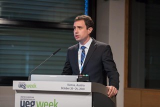 Jesús Bañales, investigador del CIBEREHD -grupo coordinado por Luis Bujanda- perteneciente al Instituto Biodonostia, recibió el premio “UEG Rising Star 2018” , que concede de forma anual la Sociedad Europea de Gastroenterología durante el Congreso Anual (UEG week) que este año tuvo lugar en Viena (Austria). El galardon es un reconocimiento a la carrera científica de excelencia de investigadores menores de 40 años.